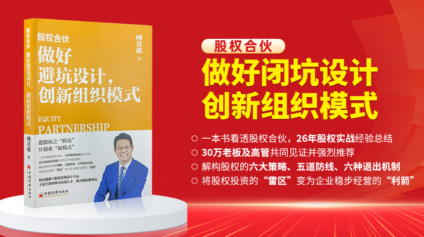 从公司股权分配、股权切割、退出机制、风险规避等方面出发,以经典案例分析为基础,以法律法规为依据,立足实践,深入解读了股权合伙及投资的关键环节和要点,详细解构股权合伙的六大策略、五道防线、六种机制,运用组合工具多拳出击,为读者扫清企业发展的直接障碍和致命隐患,将股权投资的“雷区”变为企业稳步经营的“利箭”。全书用接地气的语言和实战性强的方法,图文结合,重点明确,讲透让读者听得懂、用得好的股权合伙。
