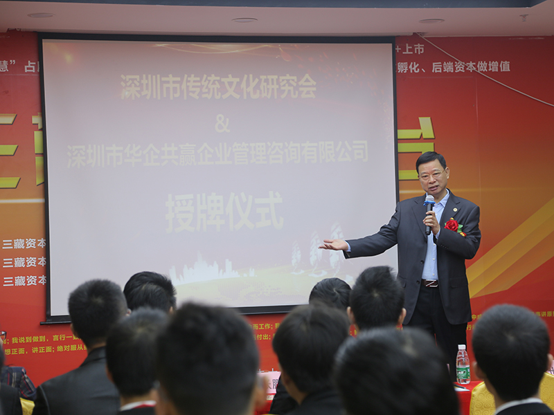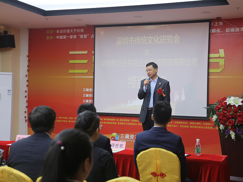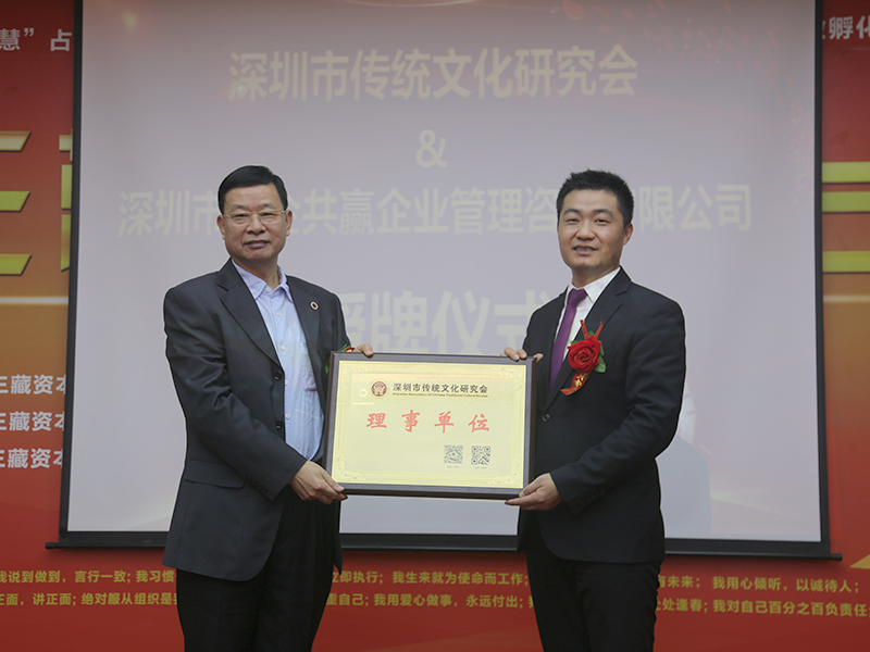 吴会长为三藏资本授牌,祝贺三藏成为深圳市传统文化研究会理事单位