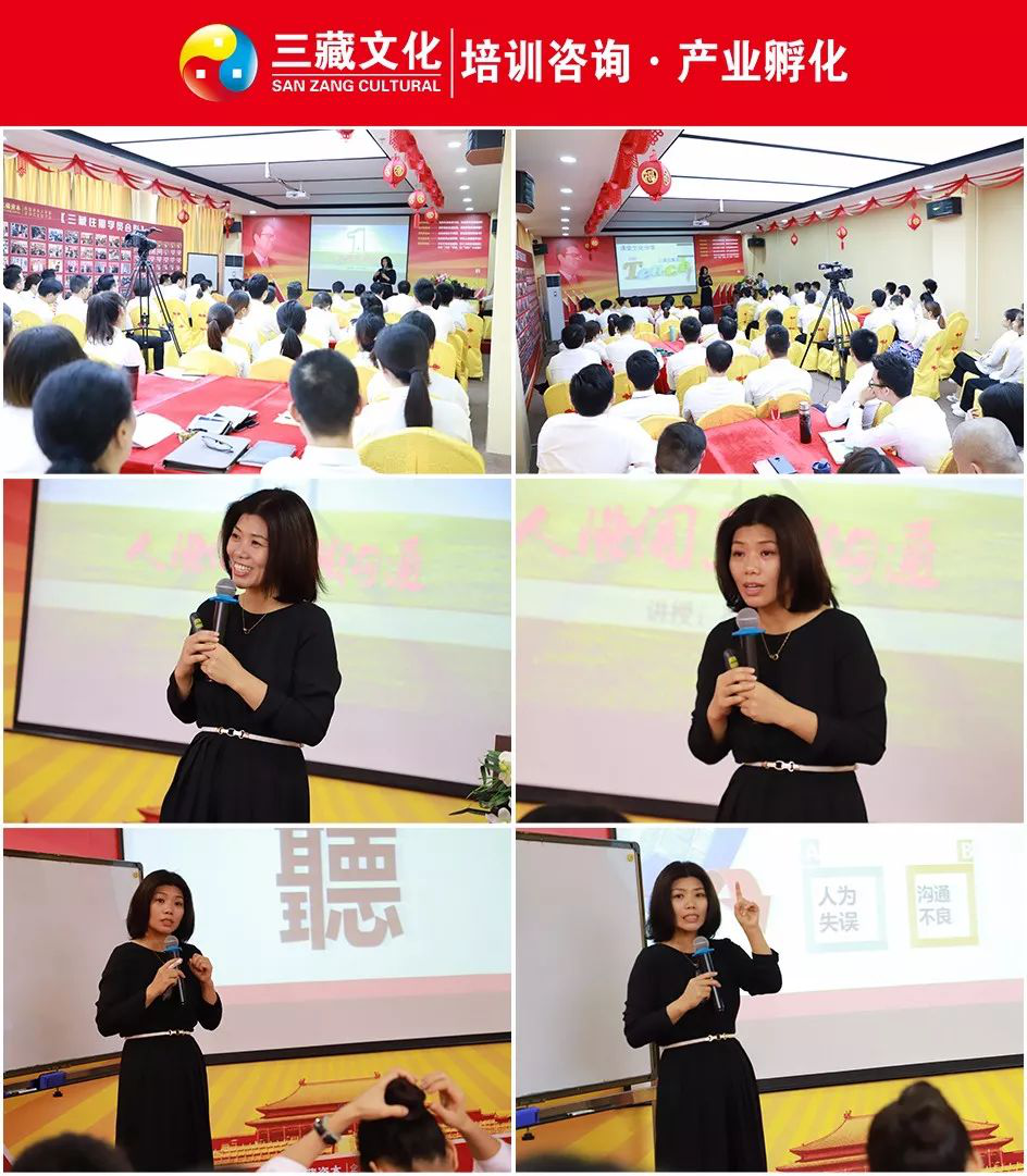 为了提高员工的工作效率,更有效的和客户沟通,建立顾客对自己的信任。三藏文化举办了一次以“人际关系与沟通”为主题的培训。 这次培训特地邀请了知名的心理学专家严红艳老师做专题讲座,我司领导及全体员工都准时参加。